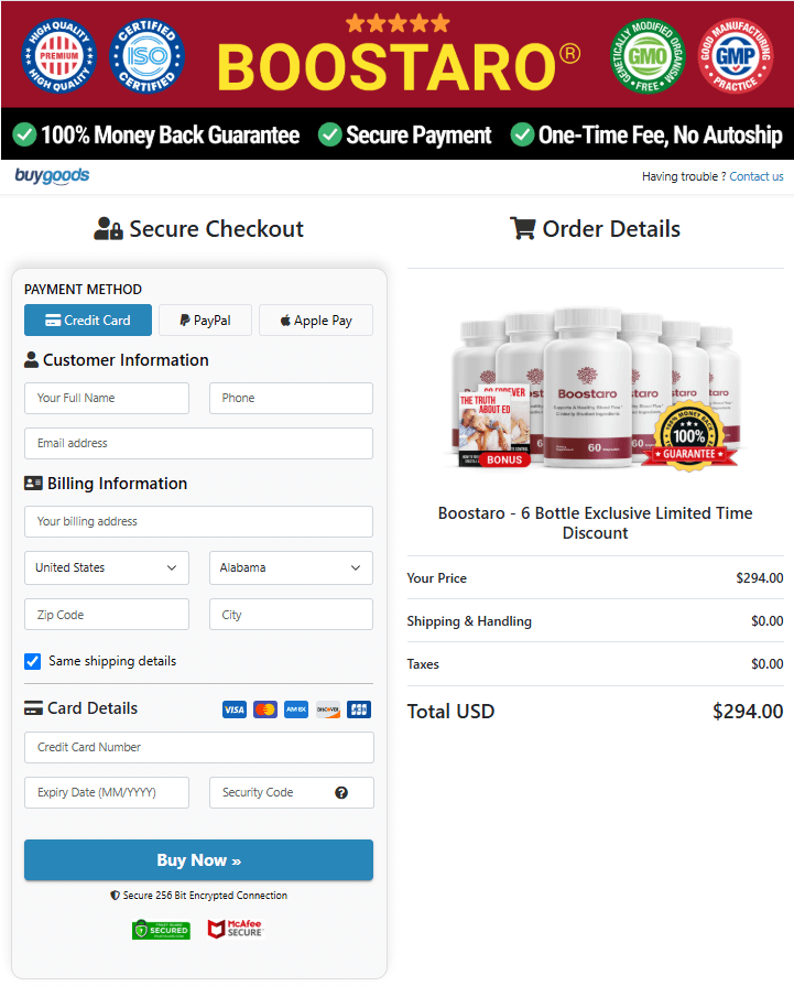 To ensure you’re receiving the authentic product, always purchase Boostaro through the official website. Only the official website guarantees the quality and effectiveness of the product, along with access to the best pricing, exclusive discounts, and a 180-day money-back guarantee.